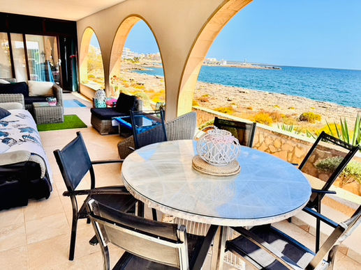 La magnifique terrasse couverte avec les alcôves et une vue mer incroyable